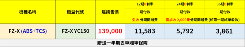 本網站所提供之線上分期,12、24、36期零利率 (24、36期均需加收分期開辦費2,000元計入首期繳款金額內) ※ 建議售價均已含領牌強制險,不包含電動車機種※