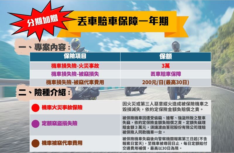 全機種36期零利率,加贈「丟車賠車保障」