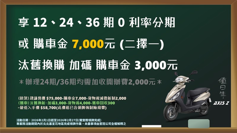 本網站所提供之線上分期,12、24、36期零利率 (24、36期均需加收分期開辦費2,000元計入首期繳款金額內) ※ 建議售價均已含領牌強制險,不包含電動車機種※