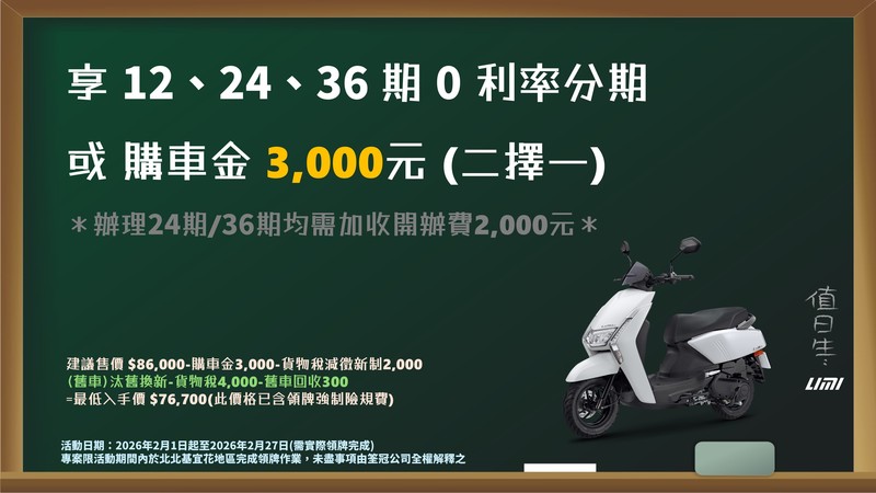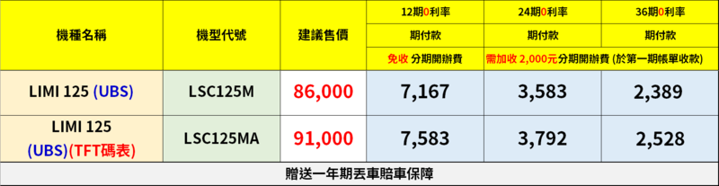 全機種36期零利率,加贈「丟車賠車保障」